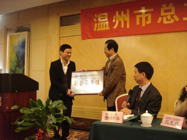 2011年12月16日下午,溫州市總工程師研究會2011年會員大會在溫州市甌昌飯店勝利召開。參加此次會議的有總師會會長虞培清(長城董事長)、秘書長邢新華、常務(wù)副會長陳時升、常務(wù)副會長黃小椿、市科技局局長徐順東、市質(zhì)量監(jiān)督局副局長梁世盛、市科協(xié)部長胡克華、市民間組織管理局代表周偉歷及其他總師會會員。會上,會長虞培清、秘書長邢新華等發(fā)表了講話。