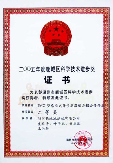 “IMC型感應(yīng)式異步高溫磁力耦合傳動器”科學(xué)技術(shù)進(jìn)步二等獎證書