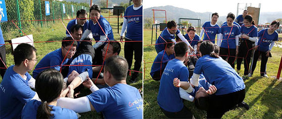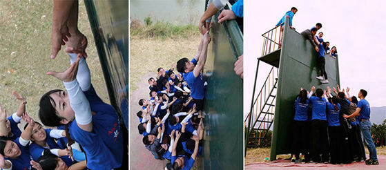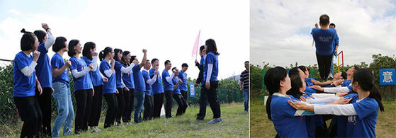 在秋高氣爽的日子里,會議期間公司組織總部銷售人員與各辦經(jīng)理前往雁蕩山拓展基地活動,項目有信任背摔,穿越電網(wǎng),畢業(yè)墻。