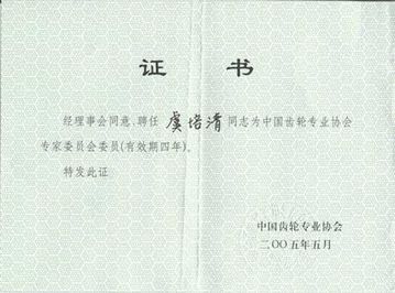 鑒于我公司總經理虞培清高工在齒輪工程領域所做出的貢獻,中國齒輪專業(yè)協(xié)會理事會特吸收其為“中國齒輪專業(yè)協(xié)會專家委員會委員”。