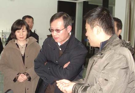 2009年12月30日下午,浙江科技學院黨委書記徐志平、鹿城區(qū)副區(qū)長林江及鹿城區(qū)科技局領(lǐng)導一行蒞臨我公司參觀考察。 圖為浙江科技學院黨委書記徐志平(中)、鹿城區(qū)副區(qū)長林江(左...